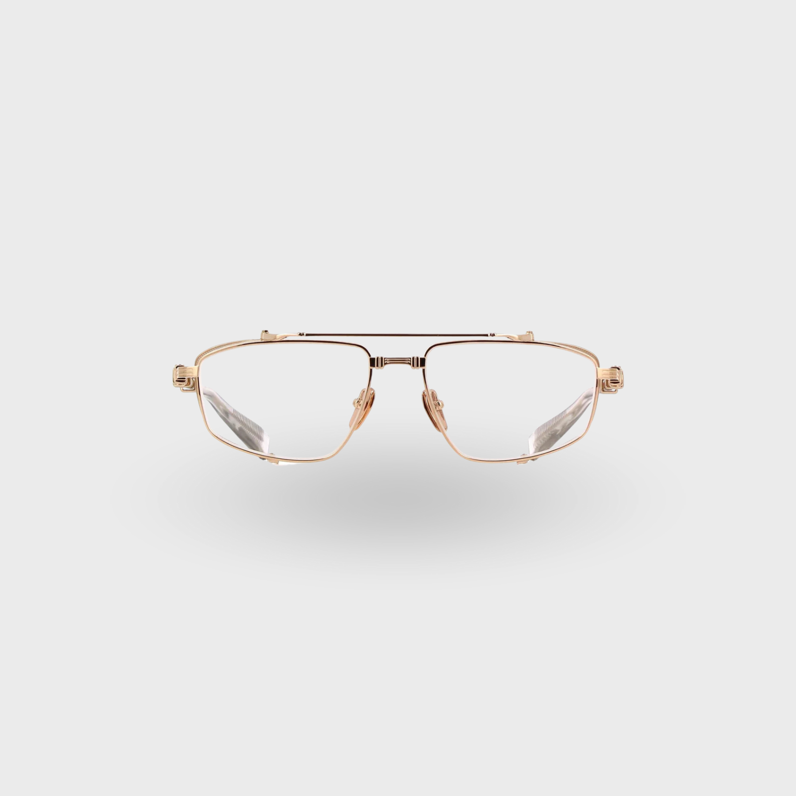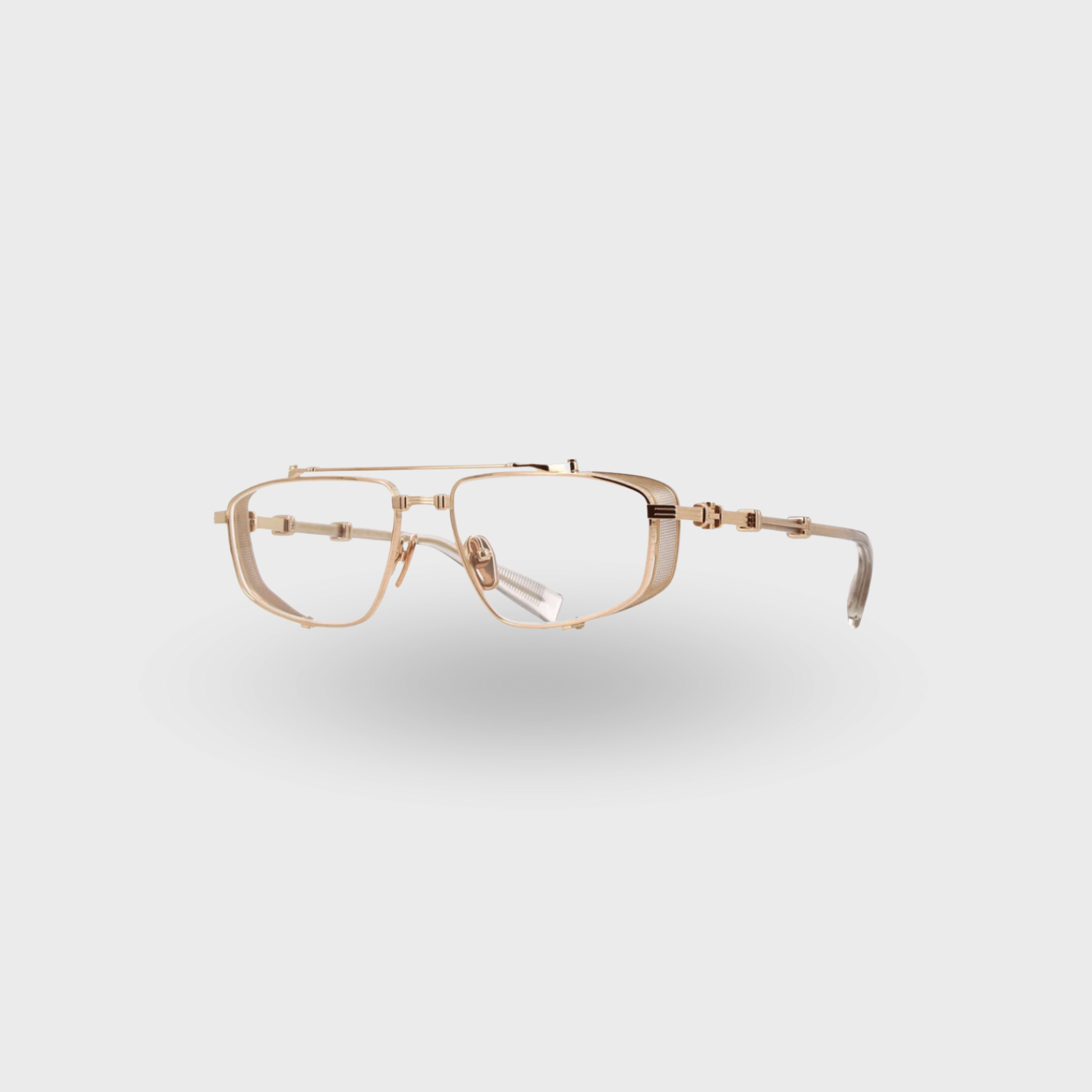 Balmain Brigade V BPX-142-56/GLD-GRY Lentes de sol unisex Un diseño aviador contemporáneo que refleja la fuerza y elegancia de la maison Balmain. La montura en metal dorado aporta un aire de lujo refinado, mientras que las lentes en gris sólido ofrecen protección total contra los rayos UV y un look versátil, fácil de combinar con cualquier estilo.