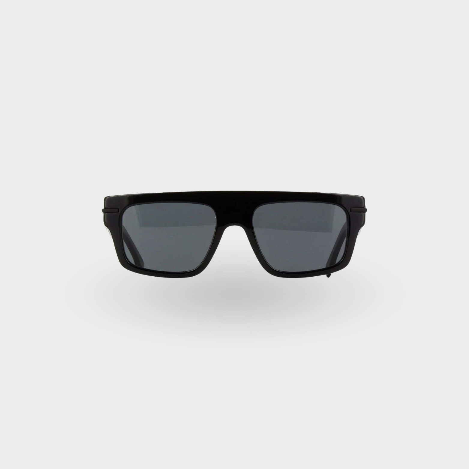 Un diseño rectangular contemporáneo que refleja la sofisticación italiana de Fendi. La montura en acetato negro brillante aporta fuerza y elegancia, mientras que las lentes en gris humo sólido ofrecen protección total contra los rayos UV y un look versátil para cualquier ocasión.