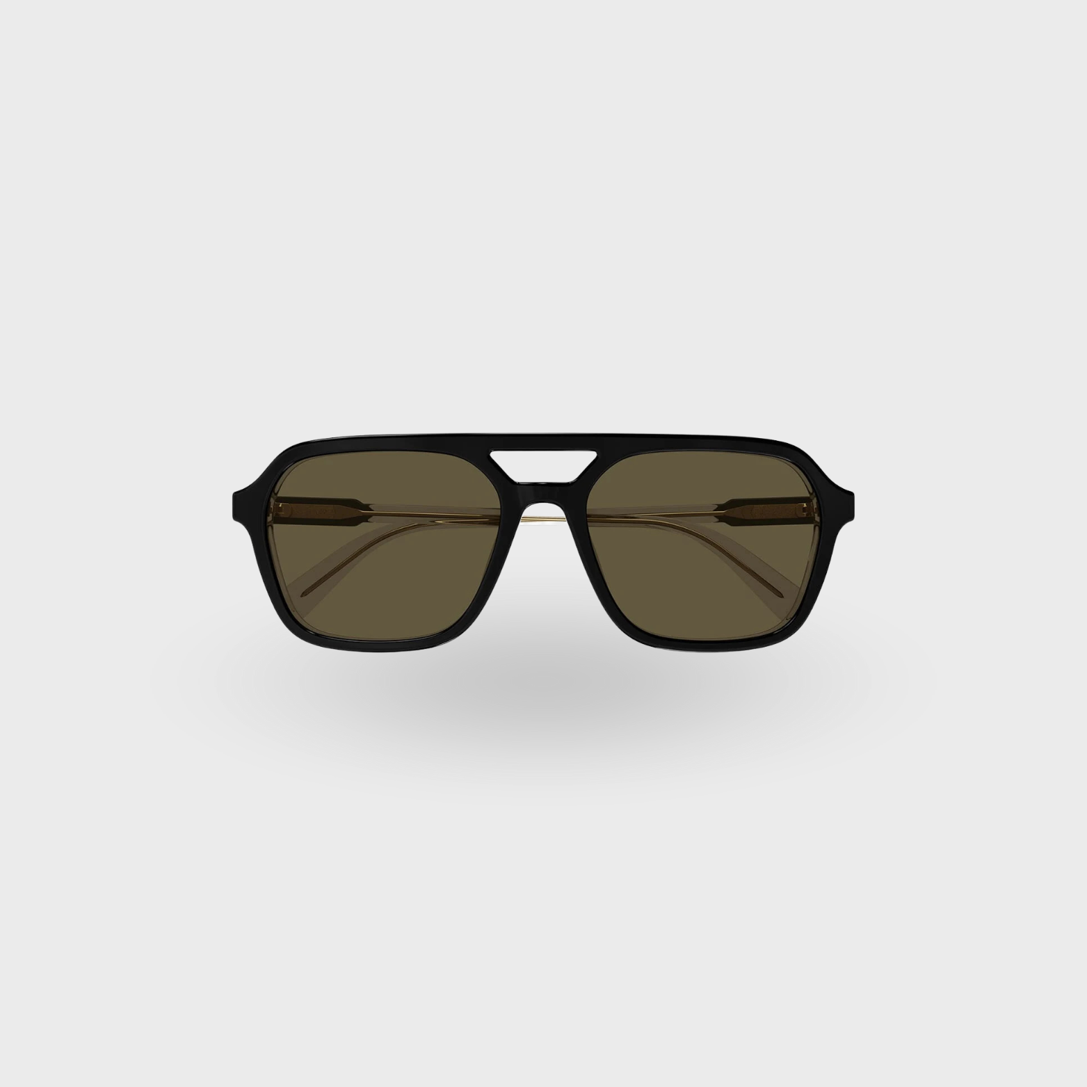 Un diseño aviador atemporal reinterpretado con la estética contemporánea de Gucci. La montura en acetato negro brillante aporta fuerza y elegancia, mientras que las lentes en marrón sólido ofrecen protección total contra los rayos UV y un look versátil. El doble puente metálico y el imagotipo “Gucci” en las varillas refuerzan la identidad de la maison italiana.