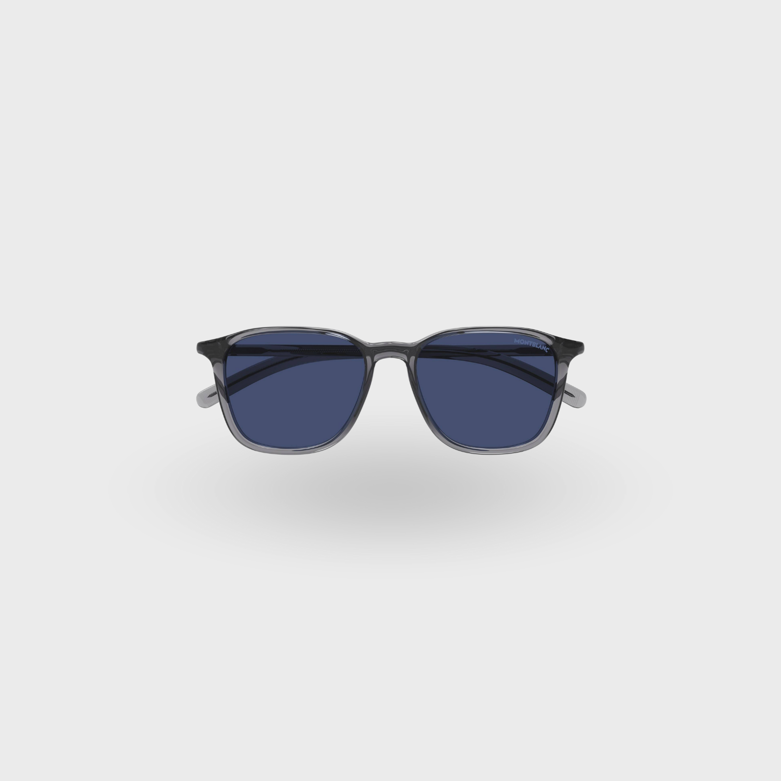 Un diseño rectangular contemporáneo que refleja la elegancia discreta de Montblanc. La montura en acetato gris transparente aporta un aire moderno y ligero, mientras que las lentes en gris sólido ofrecen protección total contra los rayos UV y un look sobrio, fácil de combinar con cualquier outfit.