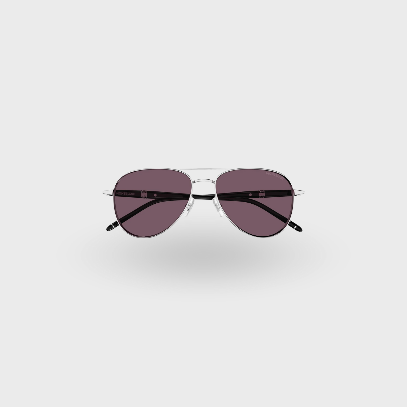 Un diseño rectangular contemporáneo que refleja la elegancia discreta de Montblanc. La montura en metal plateado aporta sobriedad y resistencia, mientras que las lentes en violeta sólido ofrecen protección total contra los rayos UV y un look moderno, llamativo y versátil.