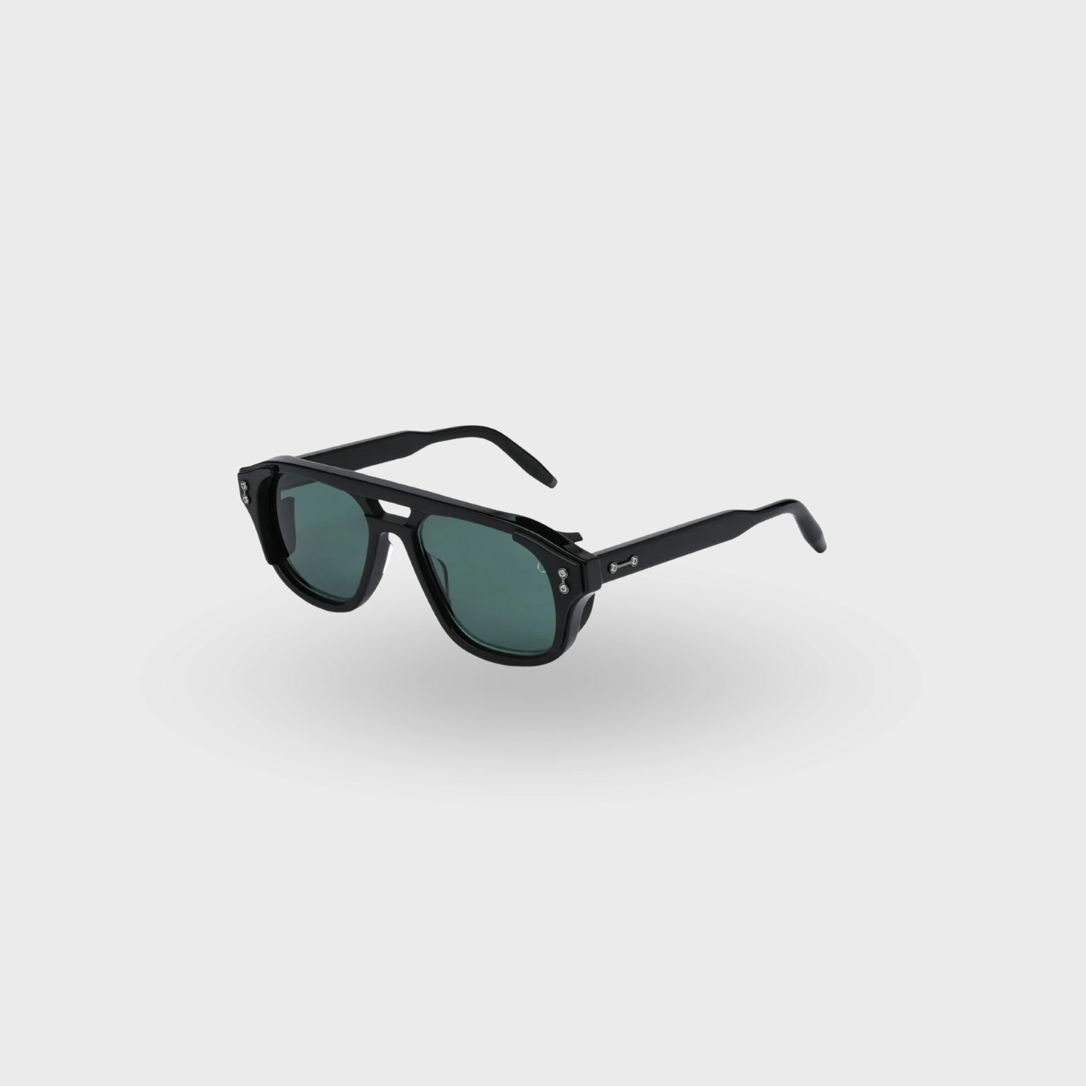 Phoenix, inspirada en la mayor de las doce constelaciones, fusiona elementos de diseño clásicos y modernos para un look contemporáneo. Elaborada íntegramente en acetato, presenta protectores laterales inyectados, que recuerdan al icónico modelo Hercules, y está realzada con los remaches característicos de Akoni. Las patillas, rediseñadas y más cortas, se integran a la perfección con la estética de la montura. Con un estilo moderno que reinventa la clásica forma aviador, Phoenix se complementa con lentes y protectores laterales de un verde esmeralda intenso que crean llamativos contrastes de color. Masculina y a la vez unisex, esta montura atrae a los creadores de tendencias con un toque clásico que le confiere un encanto retro y cinematográfico.