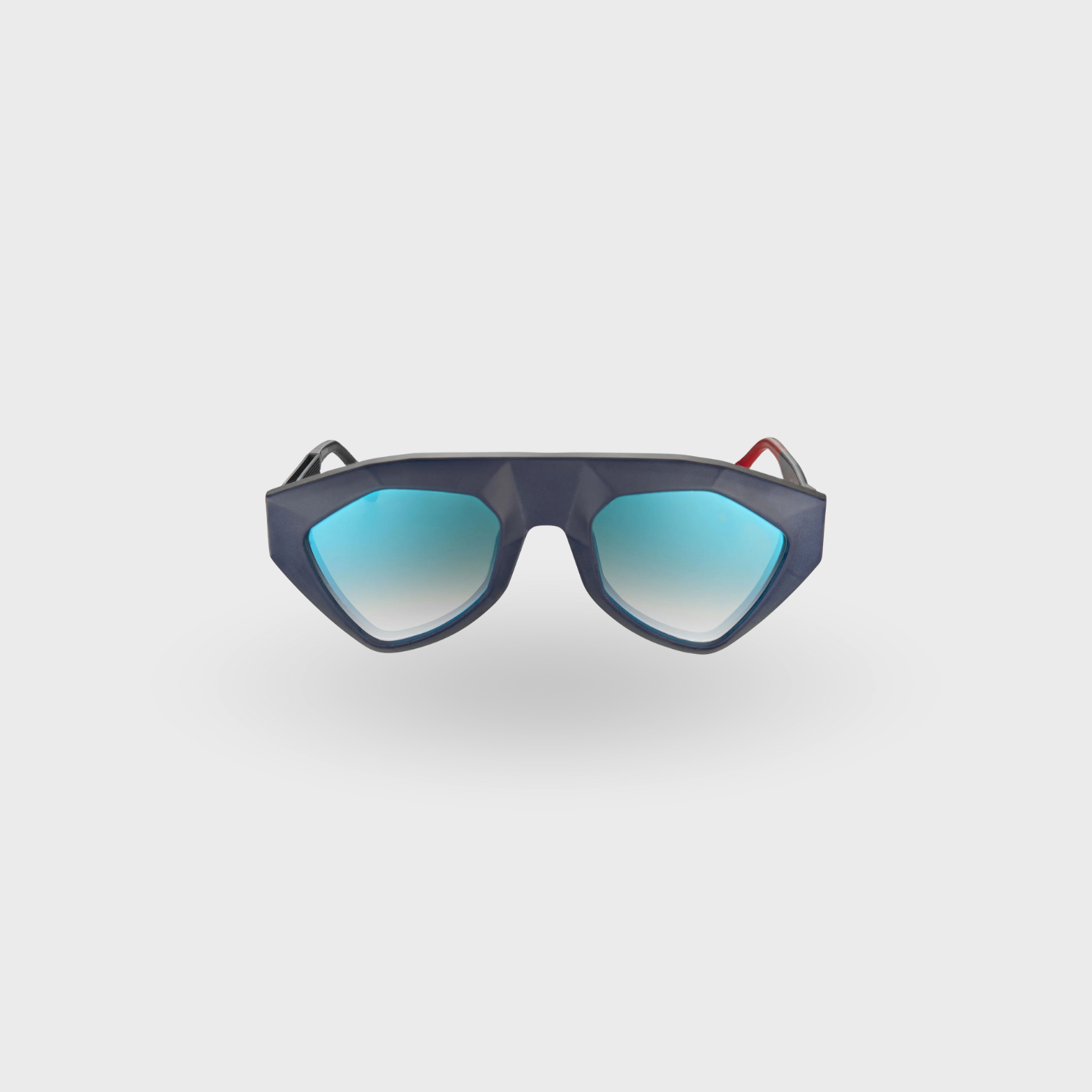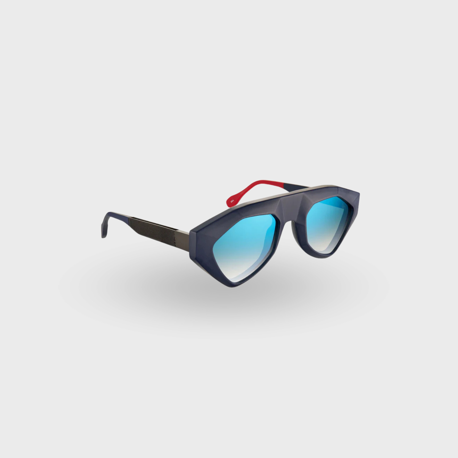 El modelo SHA‑4 combina el clásico diseño aviador con un giro contemporáneo. Su montura en acetato orgánico Mazzuchelli y varillas de metal gris aportan resistencia y sofisticación. Las lentes Barberini de cristal mineral espejadas degradadas en azul garantizan máxima nitidez, protección UV y un look audaz.